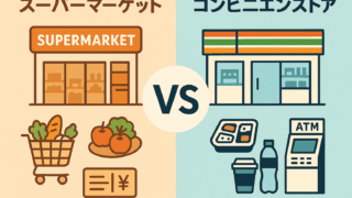 どっちが便利?どっちがお得?日常生活に欠かせない2大店舗を徹底比較私たちの生活に深く浸透している「買い物」の場。その代表格として挙げられるのが スーパーマーケットとコンビニエンスストアです。どちらも食料品から日用品まで販売しており、便利で身...